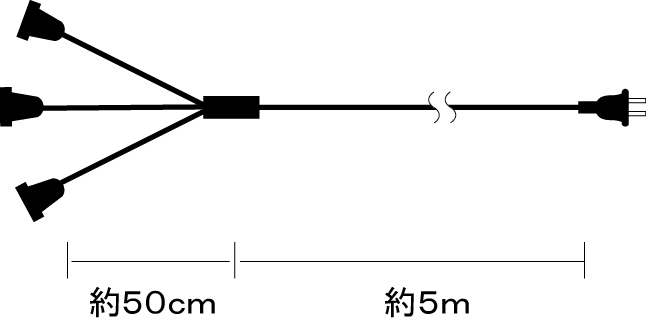 1つの電源から3系統に分配できるコード。最大負荷容量500Wで、550cmの長さで設置の自由度が高い。効率的な配線計画を実現する便利なアイテムです。