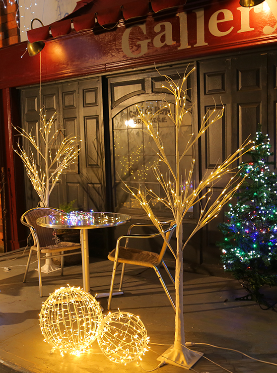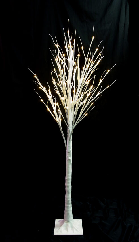 大型の白木ツリー型ライト。W60cm×H150cmサイズで96球の電球色LED、24Vアダプター付き。ホテルロビーや商業施設のエントランスなど、存在感のある装飾に最適です。