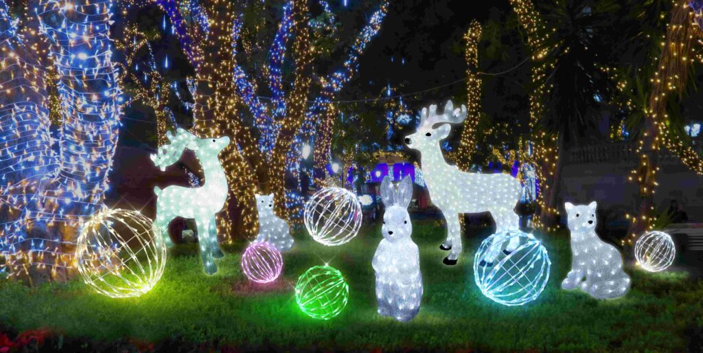 幅21cm×奥行23cm×高さ60cmのラビット立体モチーフライトです。白色LED80球搭載で可愛らしい輝き。4.5Vアダプター付きで常点灯タイプ。IPX4防水規格対応で屋外設置に最適。消費電力3W、重量約3kg。PS素材で耐久性抜群。