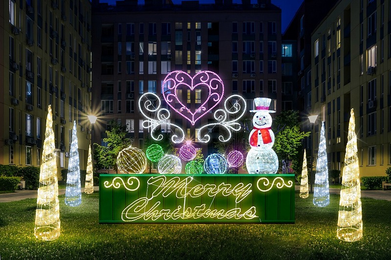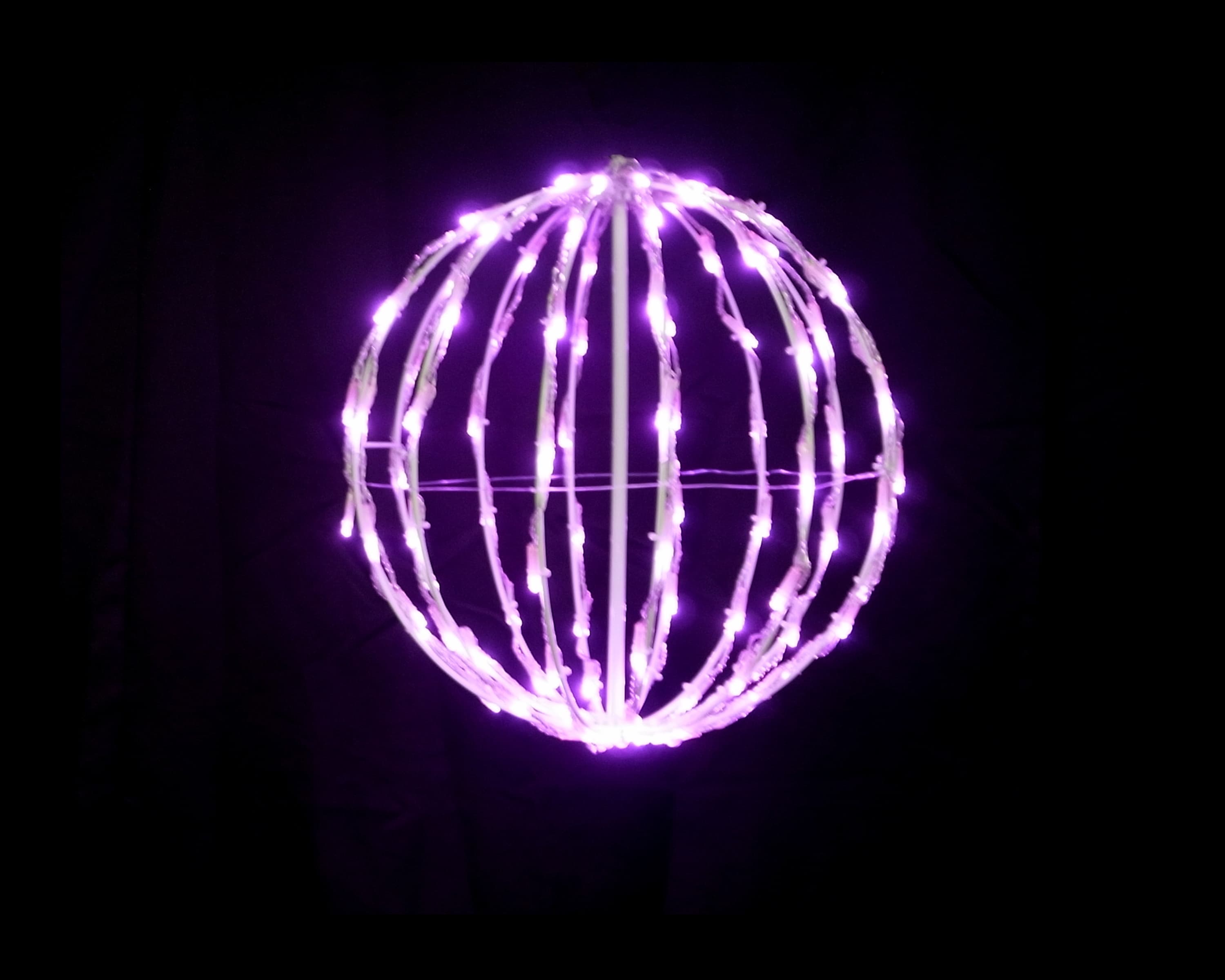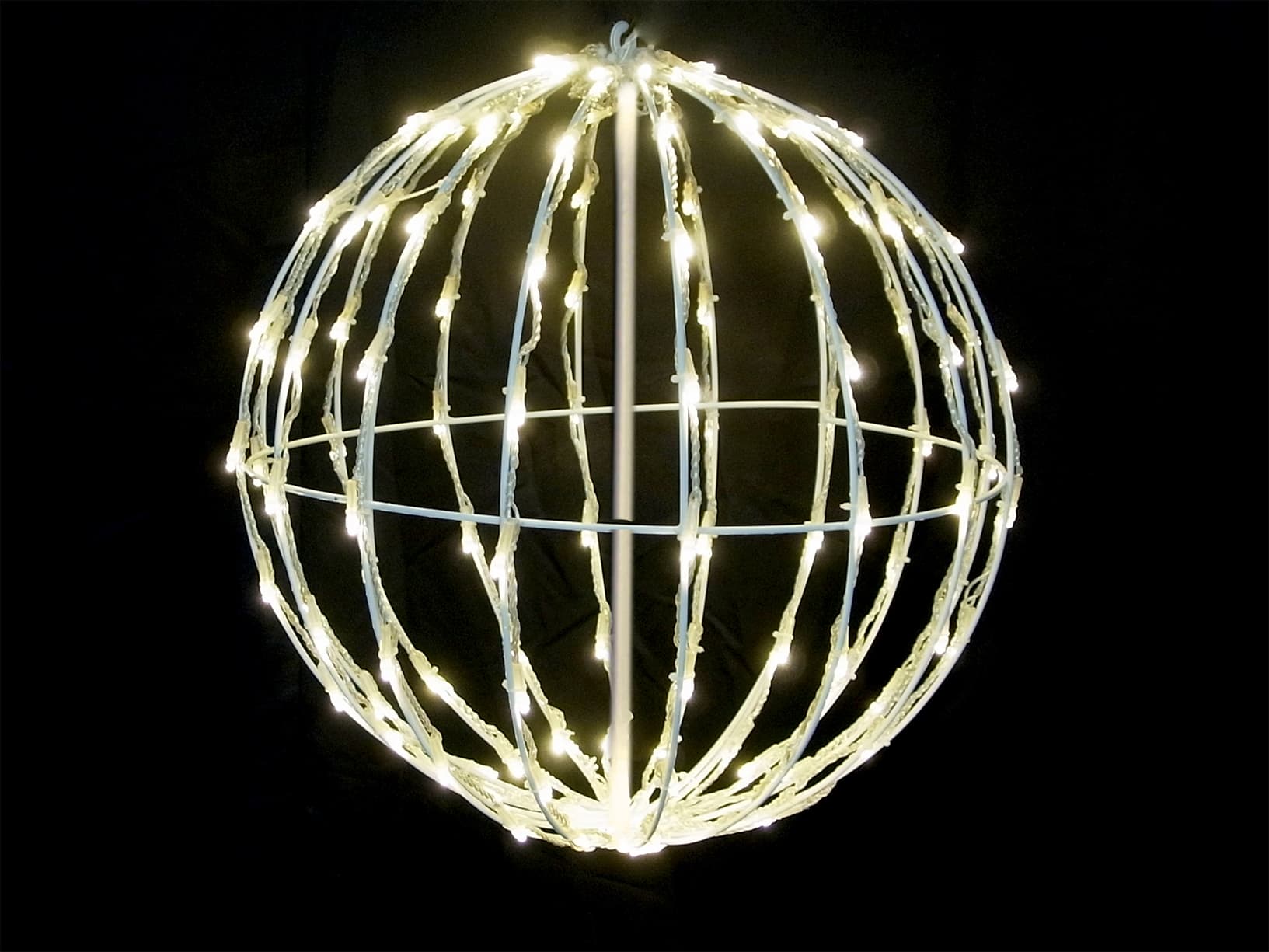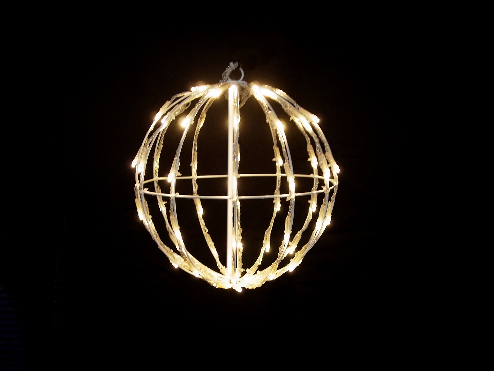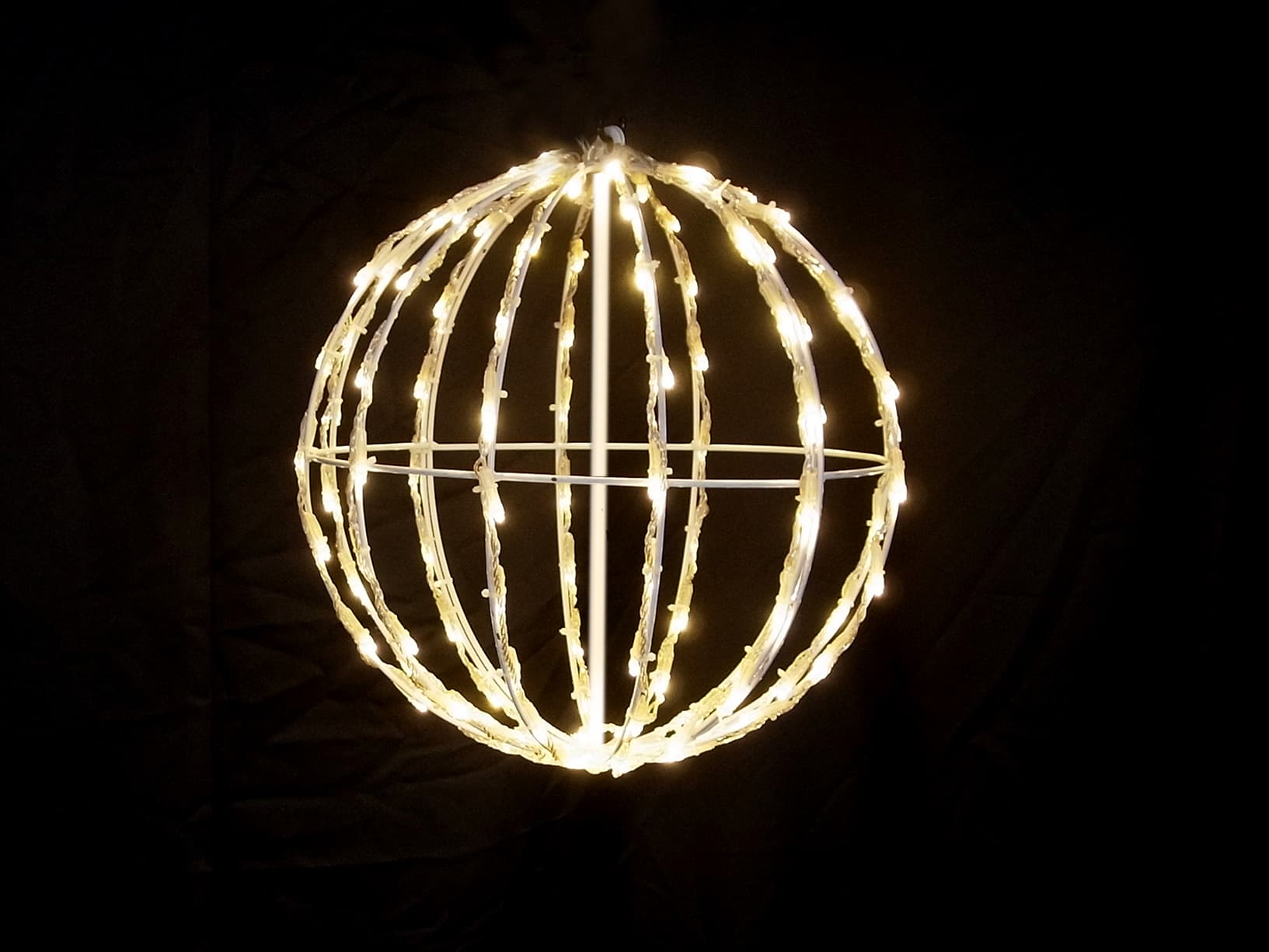 直径50cmの球体モチーフライトです。温かみのある電球色LED150球搭載で優しい輝き。常点プラグコード180cm付きで30W迄連結可能、延長コード(SLEC)使用可能。IPX4防水規格対応で屋外設置に最適。100V電源で消費電力5W、組立式。