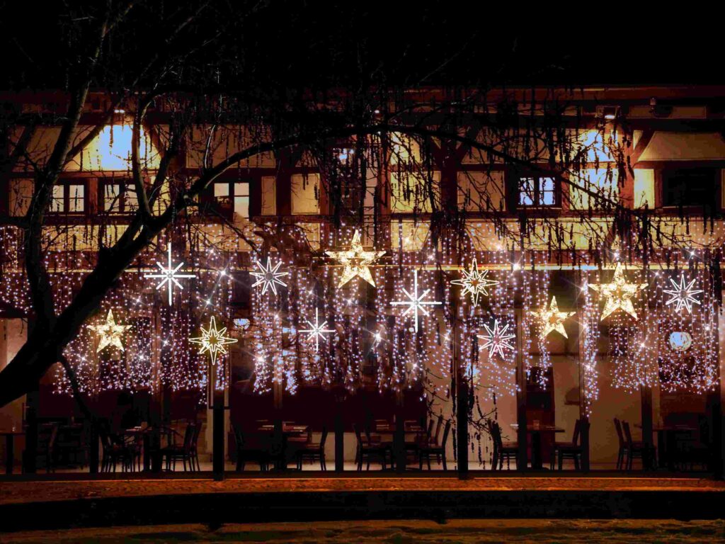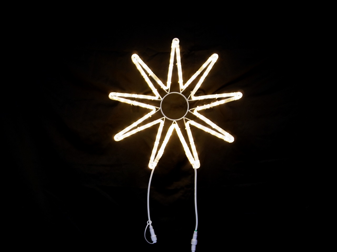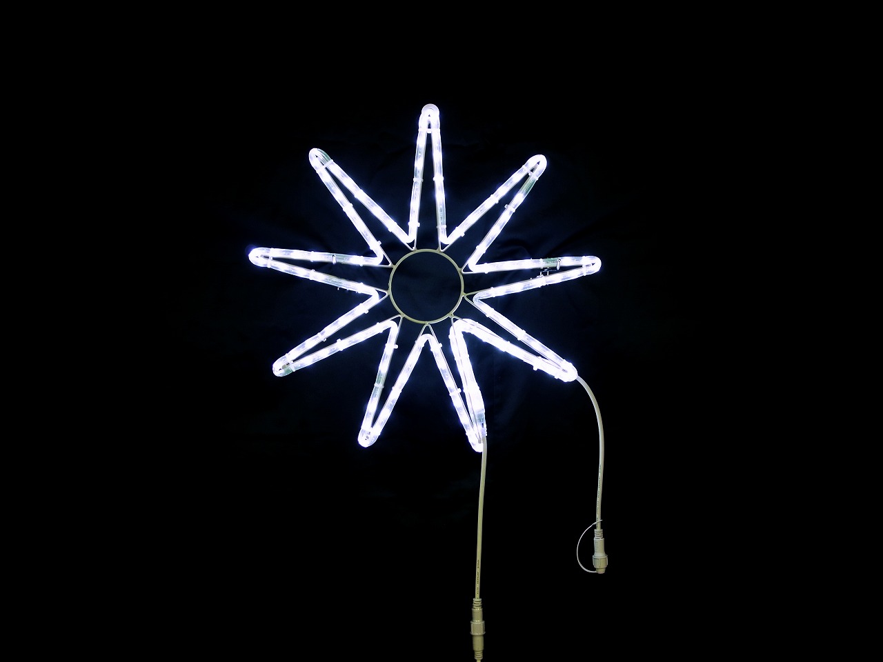 幅50cm×高さ50cmのモチーフライトです。温かみのある電球色で一部が自動で点滅するフラッシュ機能搭載。電源コード180cm付きで80W迄連結可能。IPX4防水規格対応で屋外設置に最適。100V電源で消費電力7W、重量約0.9kgの軽量設計。