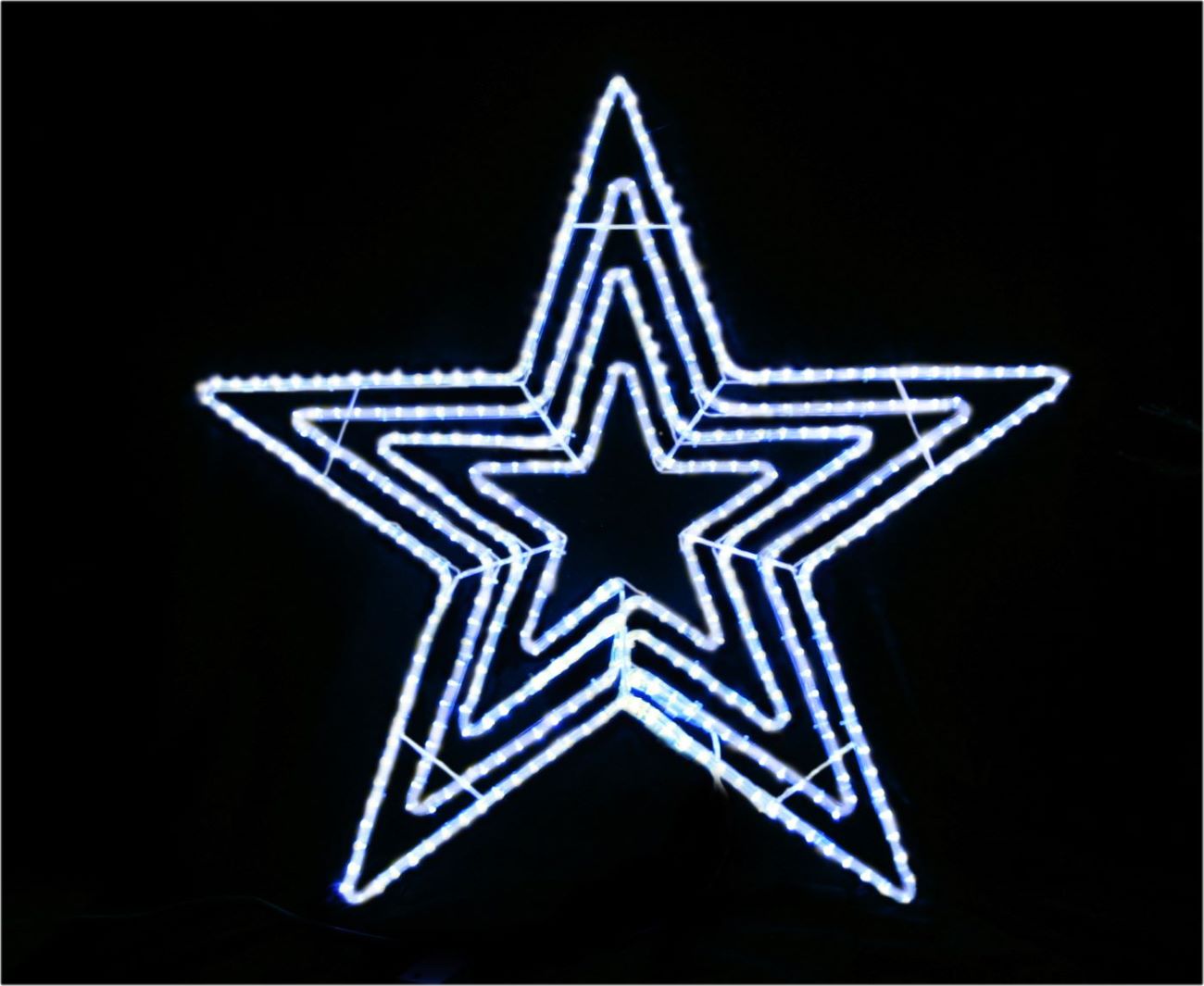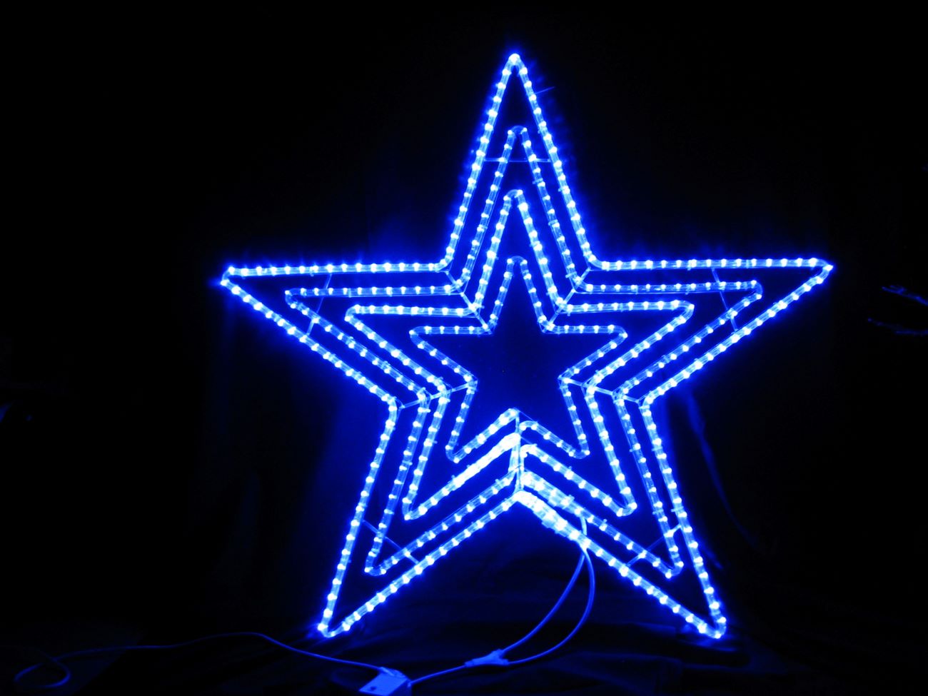 幅117cm×高さ111cmの大型星モチーフライトです。クールな青色LEDチューブライトで爽やかに輝きます。コントローラー付きで点滅パターンを楽しめます。IPX4防水規格対応で屋外設置に最適。100V電源で消費電力18W、重量約3.5kg。