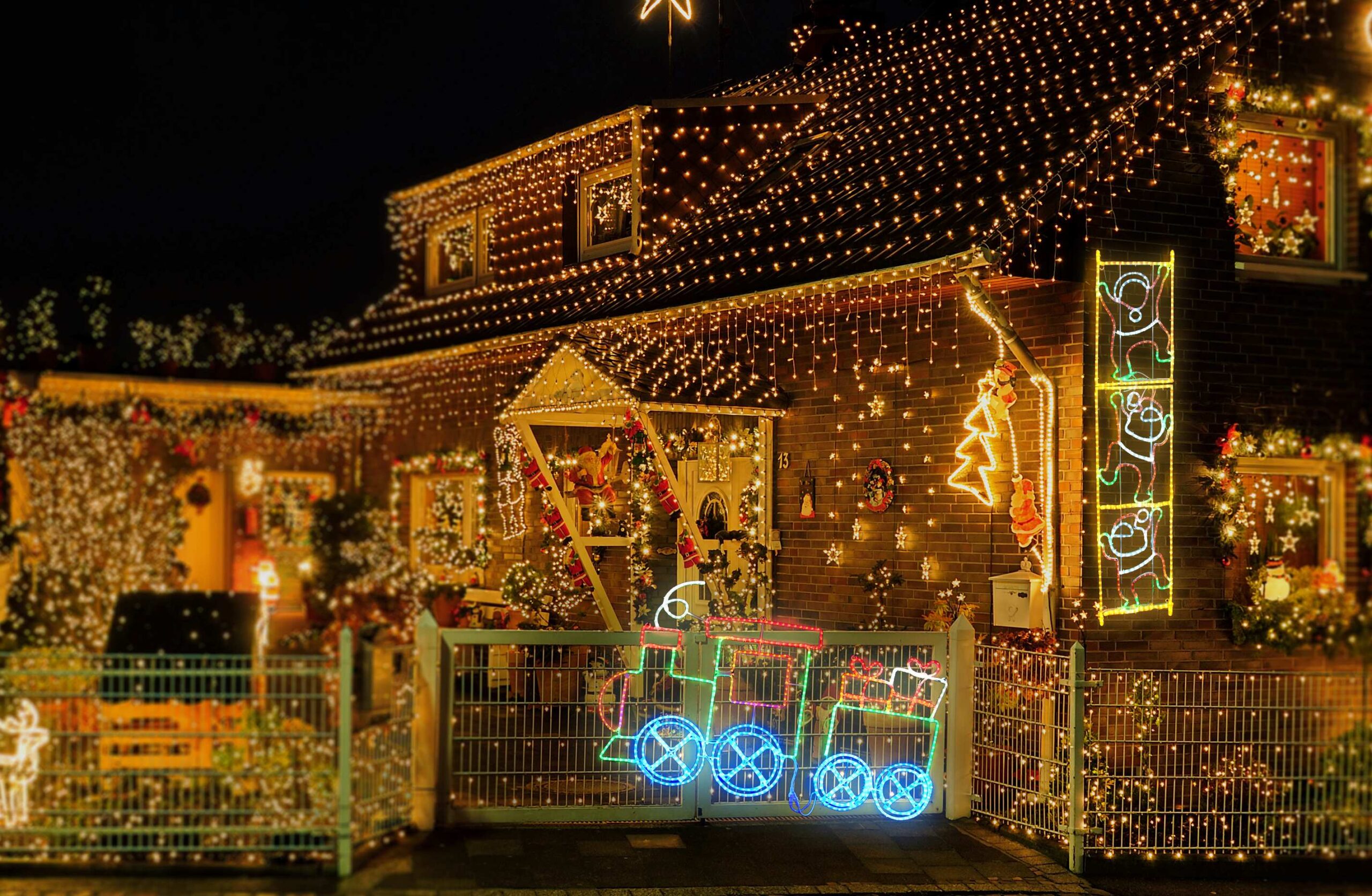 幅40cm×高さ170cmのハシゴを登るサンタモチーフライトです。スピードコントローラー付きで点滅速度を調整可能、動きのある演出ができます。IPX4防水規格対応で屋外設置に最適。100V電源で消費電力27W、重量約6kg。LEDチューブライト使用で銅線・PVC・金属素材の耐久性ある作りです。