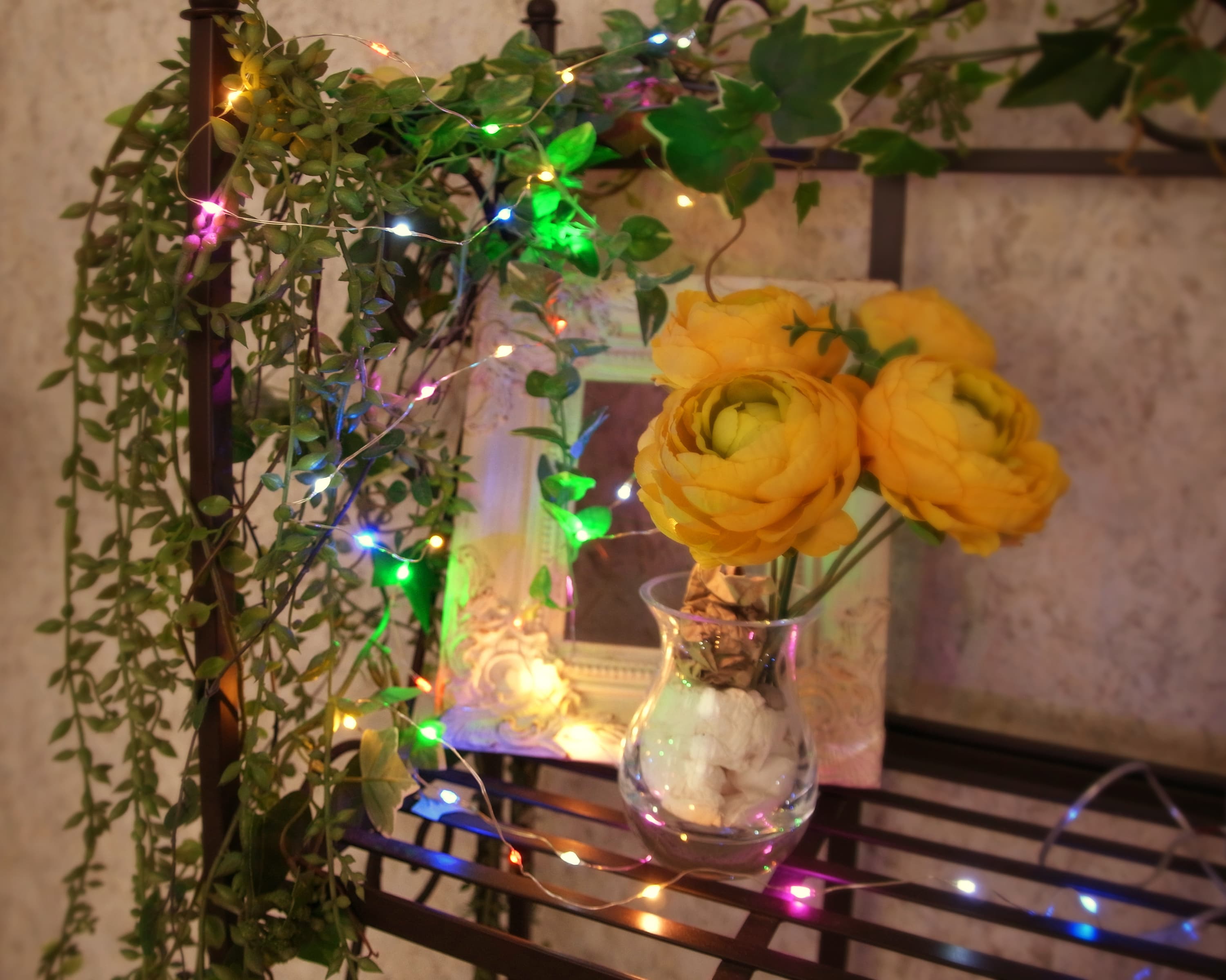 LED100球×L500cmの大容量ロングサイズにタイマー機能をプラス。6時間点灯・18時間消灯の自動サイクルで、広い空間を毎日自動でカラフルにライトアップ。7色ミックスの華やかな光が、パーティーやイベントを盛り上げます。約80gの軽量電池式で設置場所を選ばず、常点灯・フラッシュ・ウェービングの3パターンで演出も自在です。