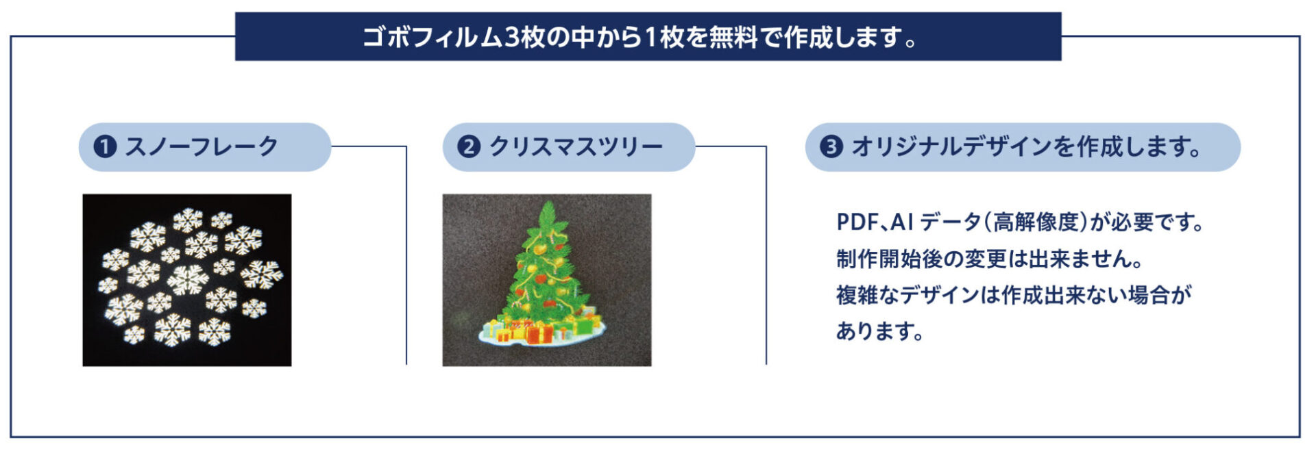 イベント・パーティ・販促などのアイキャッチに最適な回転式ゴボプロジェクター。IP65防水で屋外も安心、360度回転でダイナミックな演出を実現。ゴボフィルム1枚無料作成、オリジナルデザインも対応可能です。