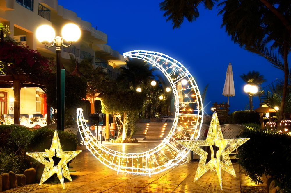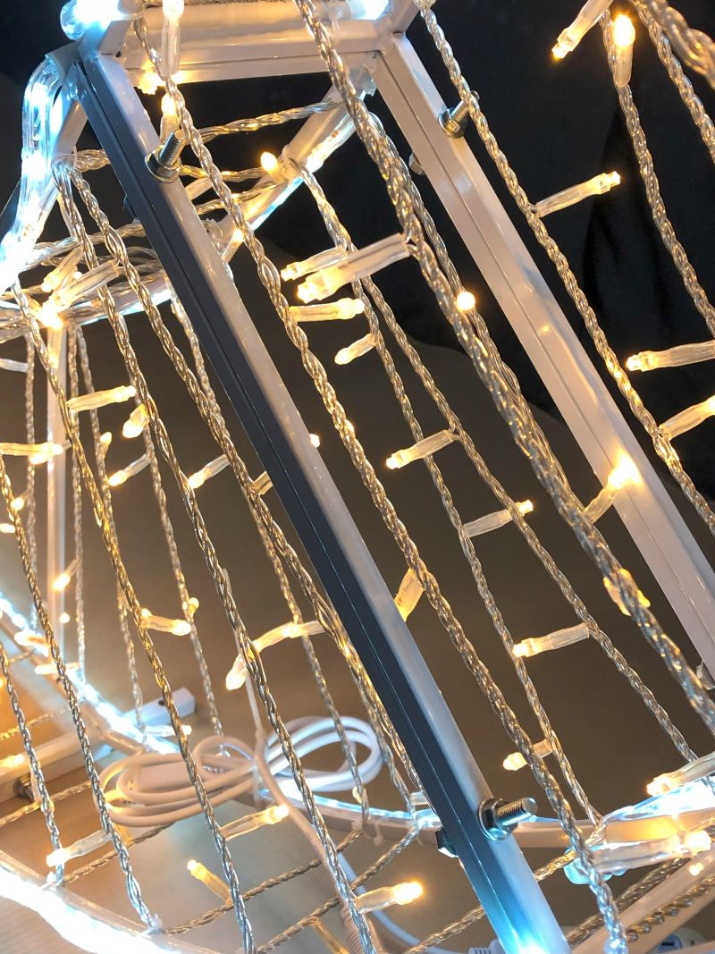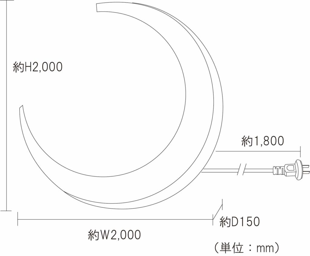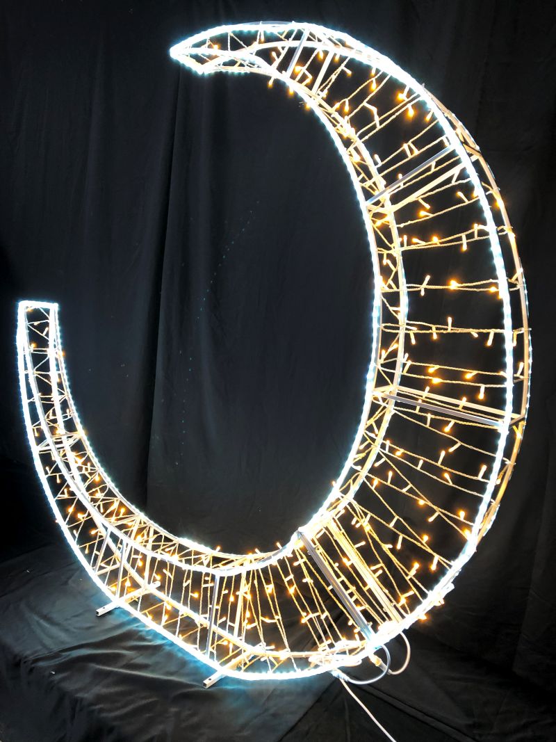 圧倒的な存在感の月のオブジェライト。W200cm×H200cmの大サイズで、人々の心に残るフォトスポットを創出。400球のLEDで豪華に輝き、IPX4防水で屋外も安心。2分割の組立式です。