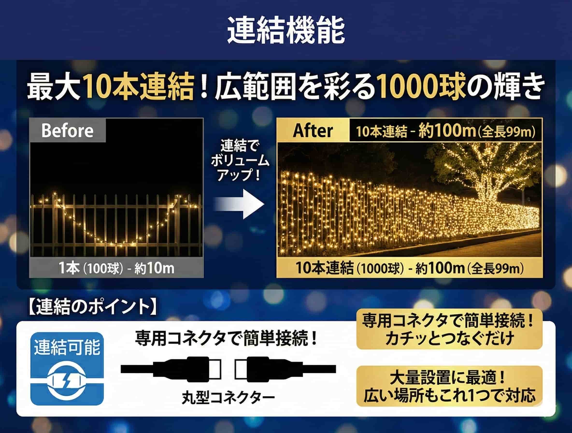 グリッターライト 100球 カラー選択可 電源別売 最大10連結