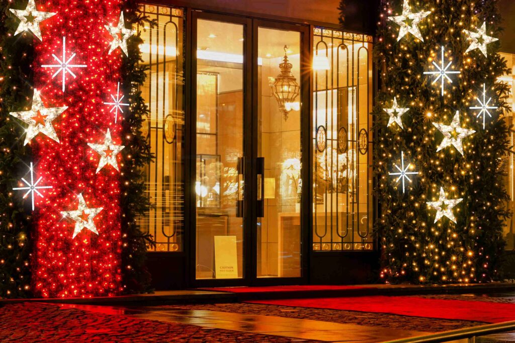 幅50cm×高さ50cmのクリスタルスターモチーフライトです。電球色LED46球で温かみのある輝き。常点プラグコード180cm付きで同型8セット迄連結可能、延長コード(MEC180)使用可能。IPX4防水規格対応で屋外設置に最適。100V電源で消費電力3W、重量約1kg。