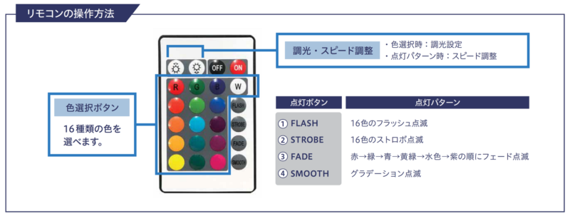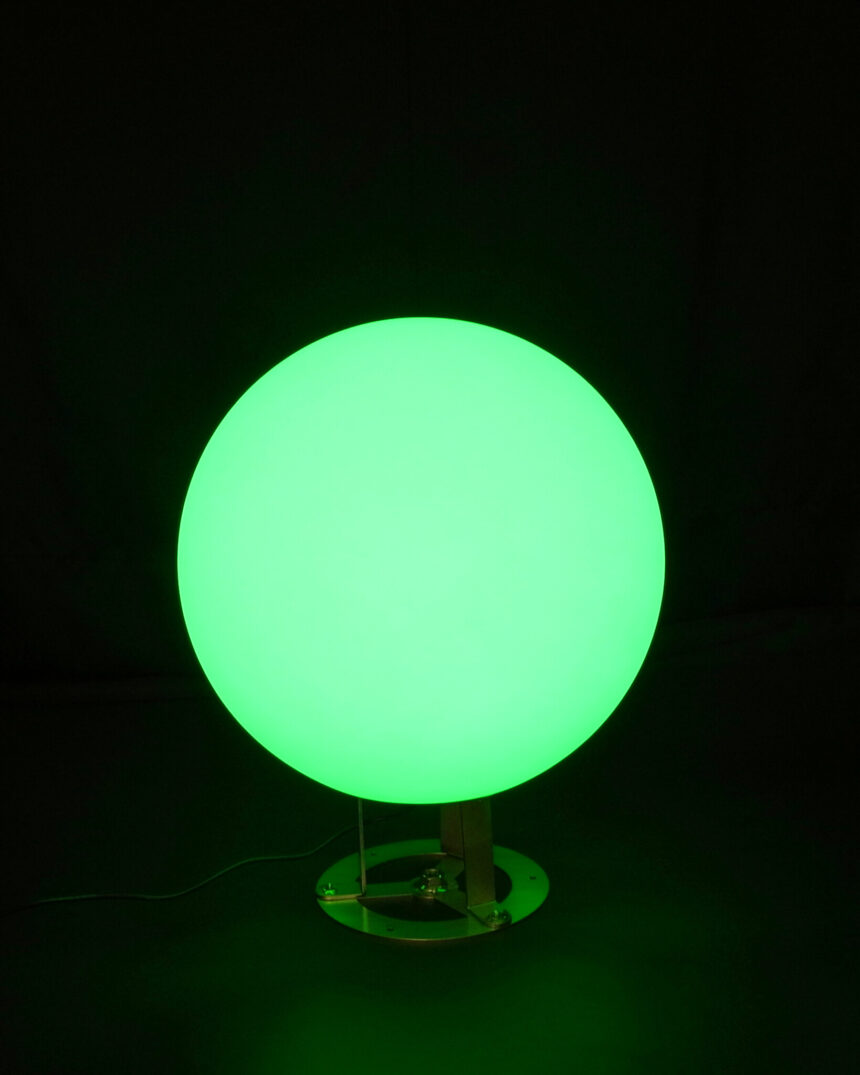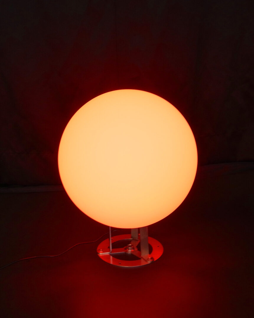 リモコンで16種類の色と4パターンの点灯が選べる大型球体オブジェ。φ50cmの圧倒的存在感でIPX4防水、5Vアダプター付き。インパクトある色変化演出を実現します。