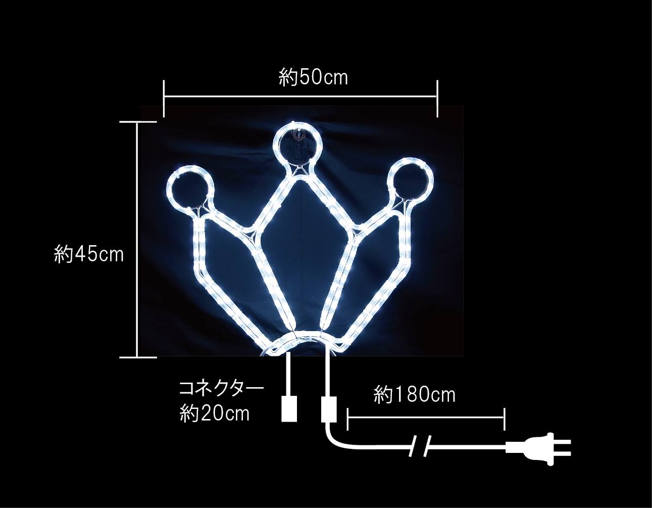 幅50cm×高さ45cmのアラベスク模様モチーフライトです。温かみのある電球色で落ち着いた雰囲気を演出。常点プラグコード180cm付きで80W迄連結可能。IPX4防水規格対応で屋外設置に最適。100V電源で消費電力8W、重量約1kgの軽量設計。
