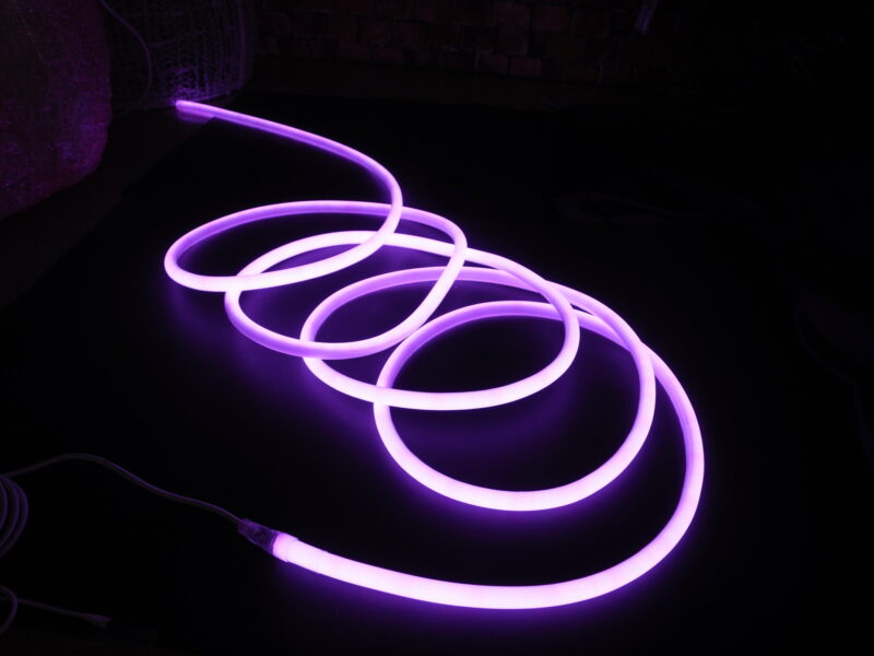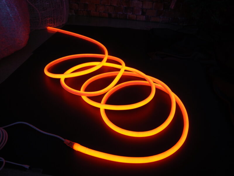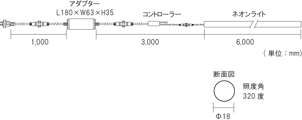 リモコンで12種類の色と20パターンの点灯が選べる丸型ネオンライト。φ18mmの断面で柔軟に曲げられ、320度の広い照射角。IP65防水で屋外も安心、24Vアダプター付きですぐに使えます。