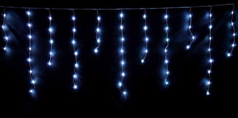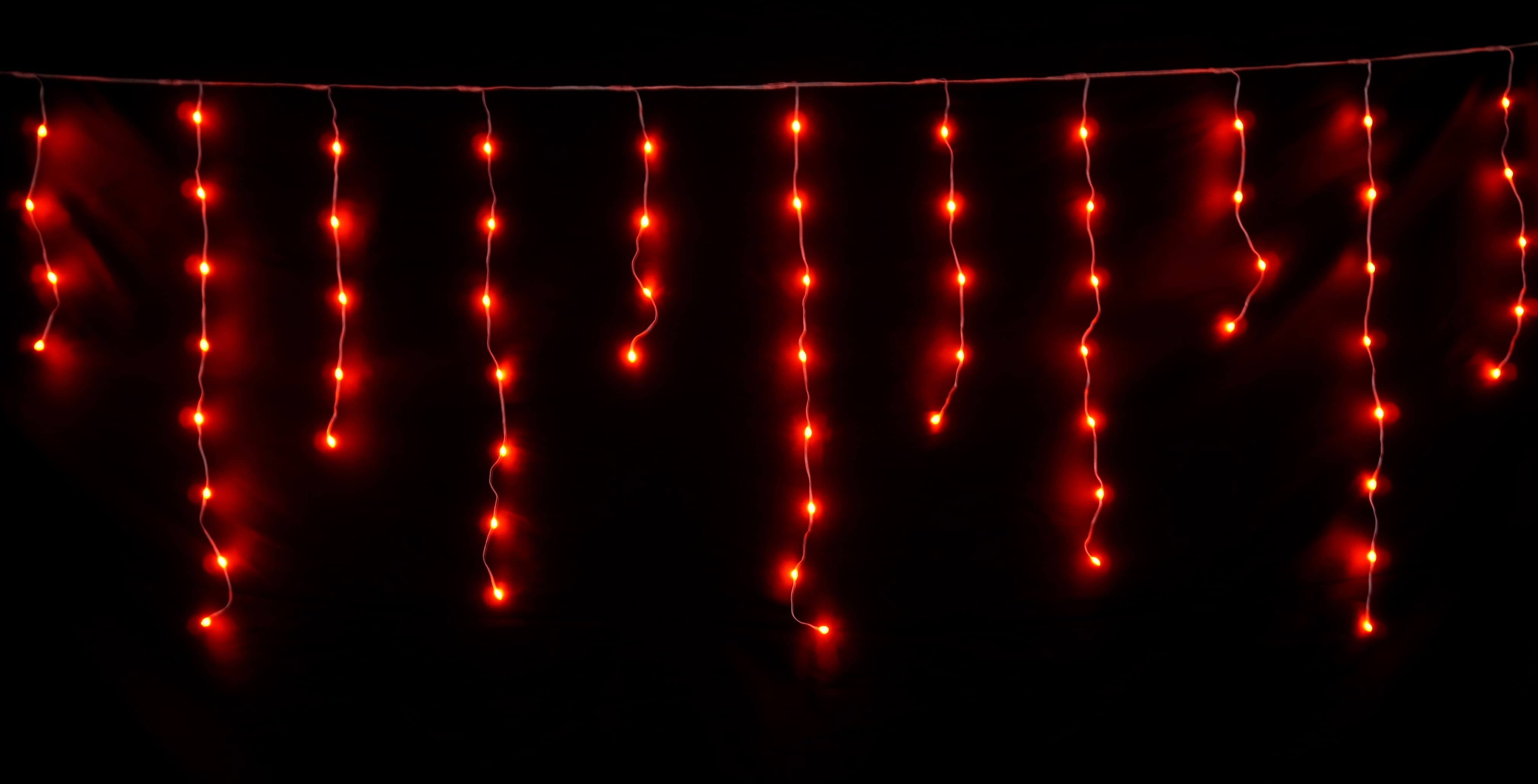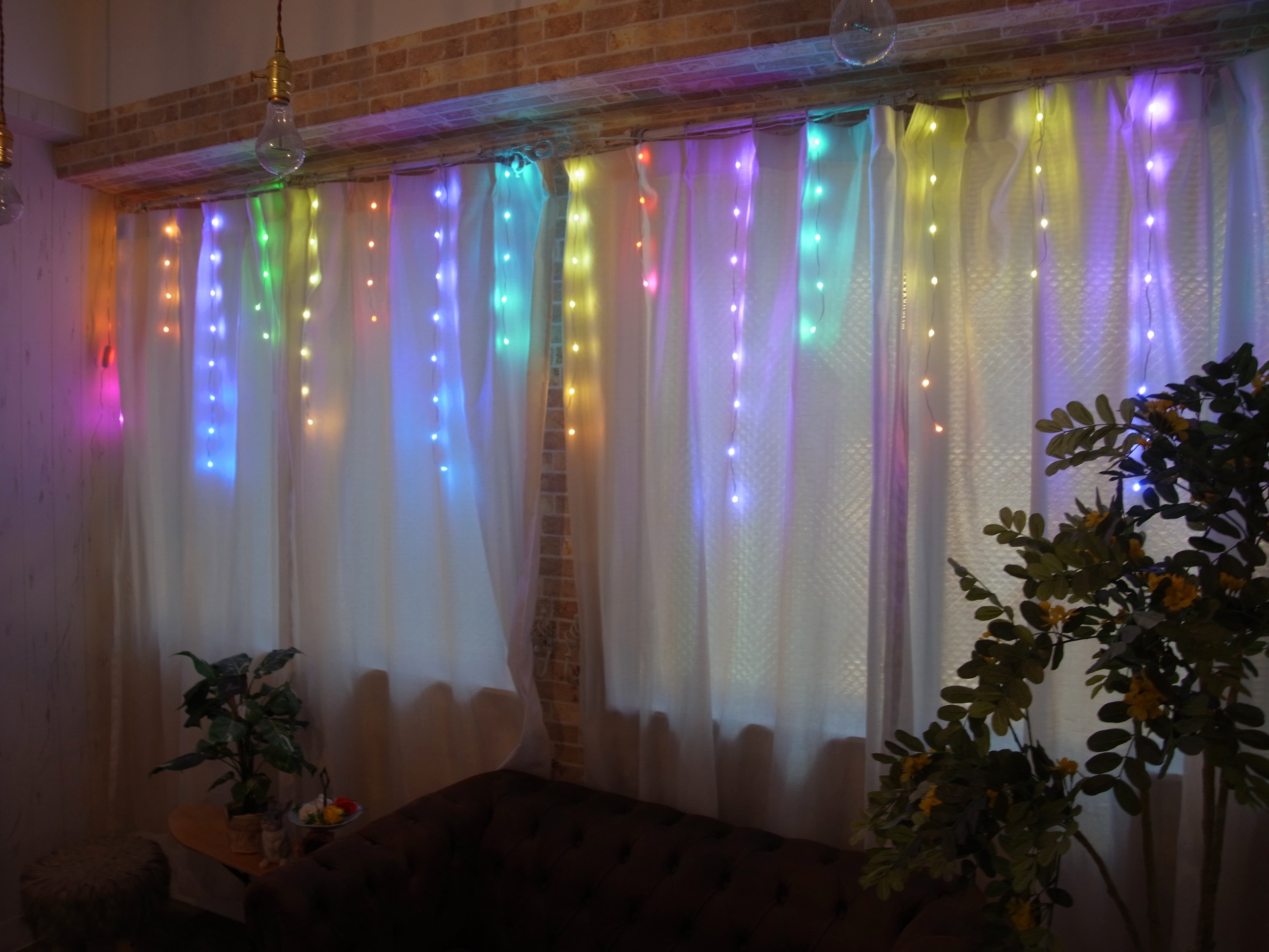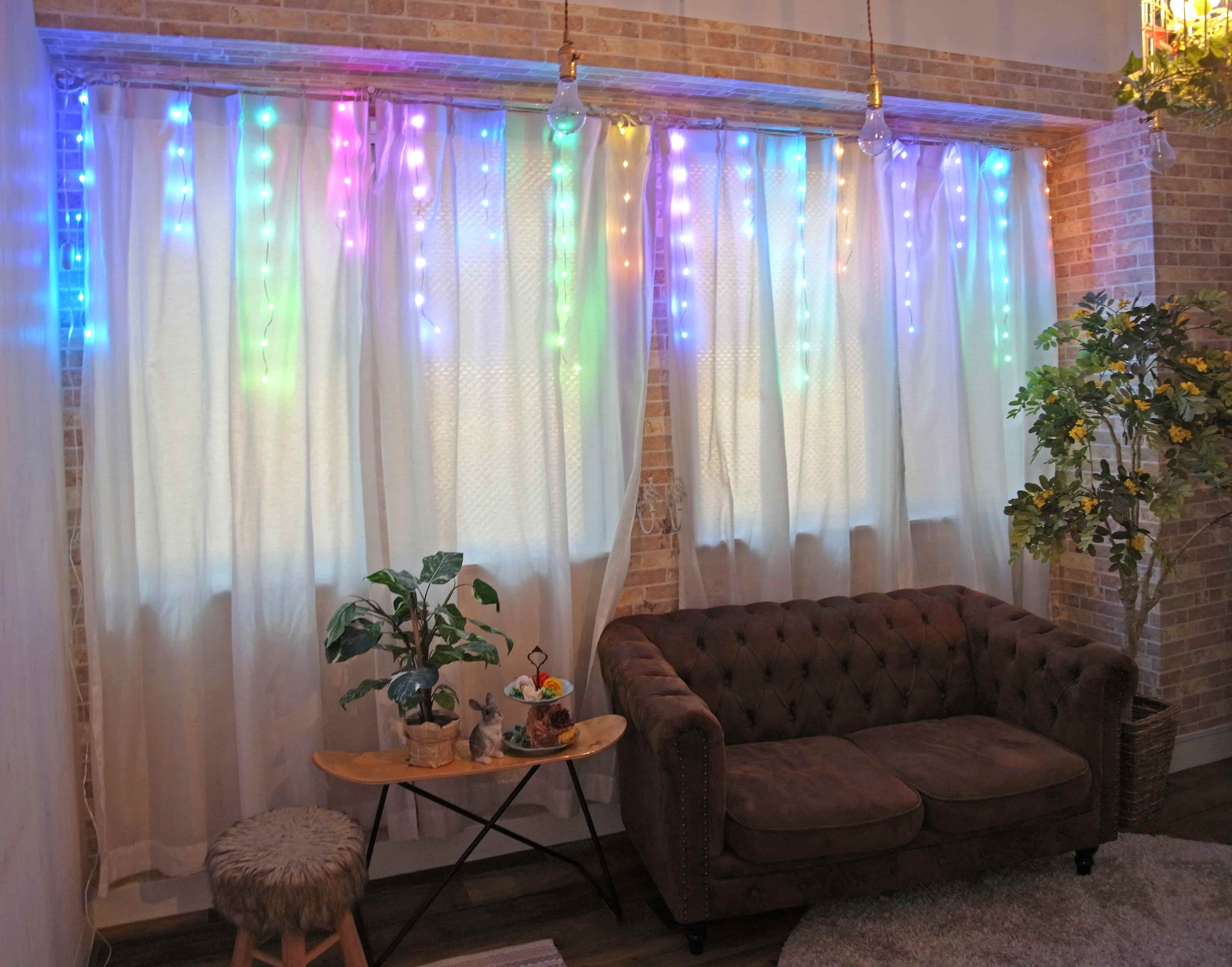 つらら型デザインが冬の氷柱を思わせる幻想的な空間を創出。W300cm×H78cmの存在感あるサイズで、窓辺やカーテンレール沿いの装飾に最適です。16色×16パターンで約32シーンもの演出バリエーションを実現。平たいコードで絡まりにくく、約230gの軽量設計で設置も簡単。リモコンでスピード調節・タイマー設定が可能、イベントやパーティーの雰囲気づくりにおすすめです。