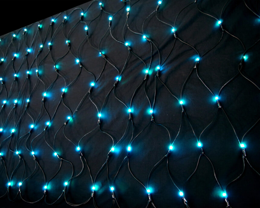 1つのライトで13種類の色と9パターンの点灯が選べる多機能ネットライト。リモコン操作で自在に色変更可能、メモリー機能付きで設定を記憶。W320cm×H80cmの大サイズで、IPX5防水。最大4連結対応で広範囲を華やかに彩ります。