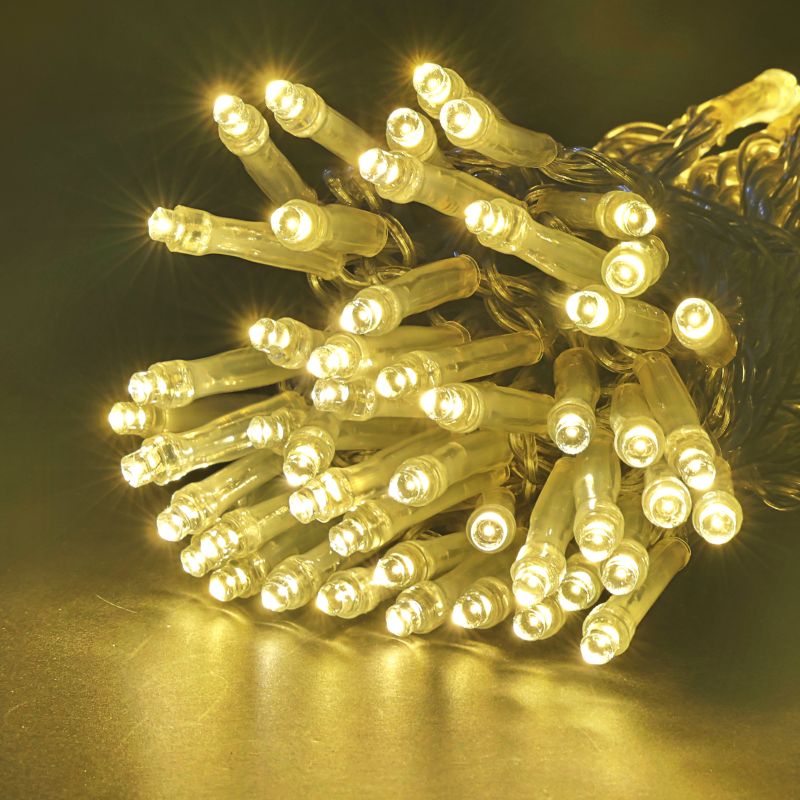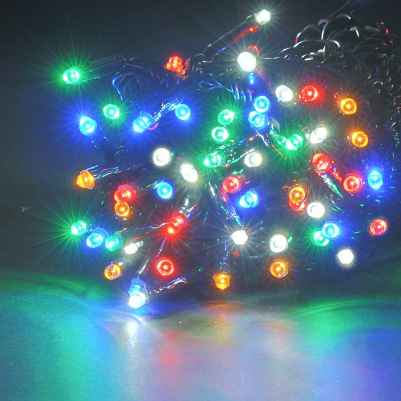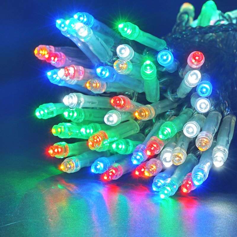 清潔感のある白と爽やかな青の2色ミックス。シルバーコードとの相性抜群で、モダンな空間演出が可能です。約290gの軽量で施工しやすく、IP66防水仕様で悪天候にも強い設計。常点灯タイプで目に優しく、最大12セット連結可能。ショッピングモールやオフィスビルの装飾におすすめです。