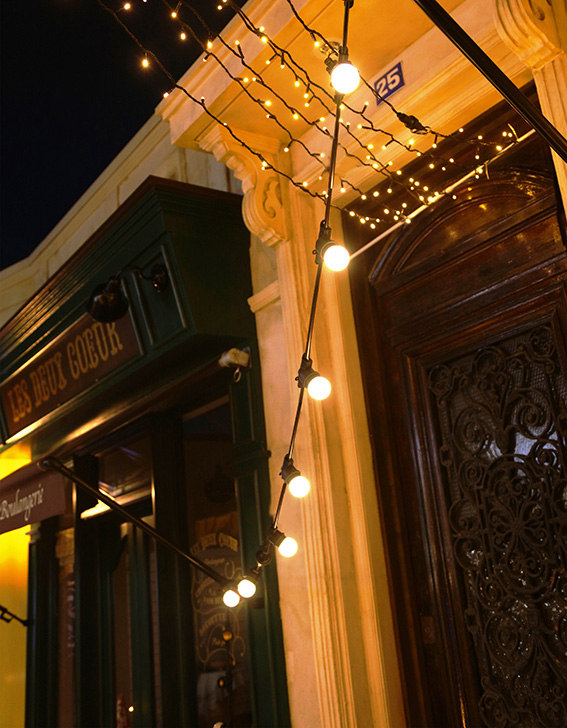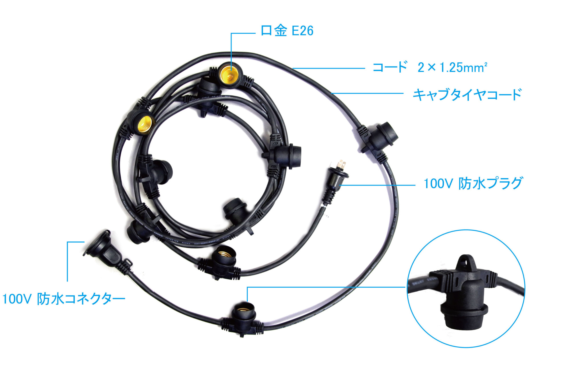 LED2W球(E26ベース)を10個装填できるベルト型ライト。お好みの球を自由に組み合わせて、オリジナルの演出が可能。最大5連結対応で、常点灯仕様。カフェやレストランのデコレーションに最適です。