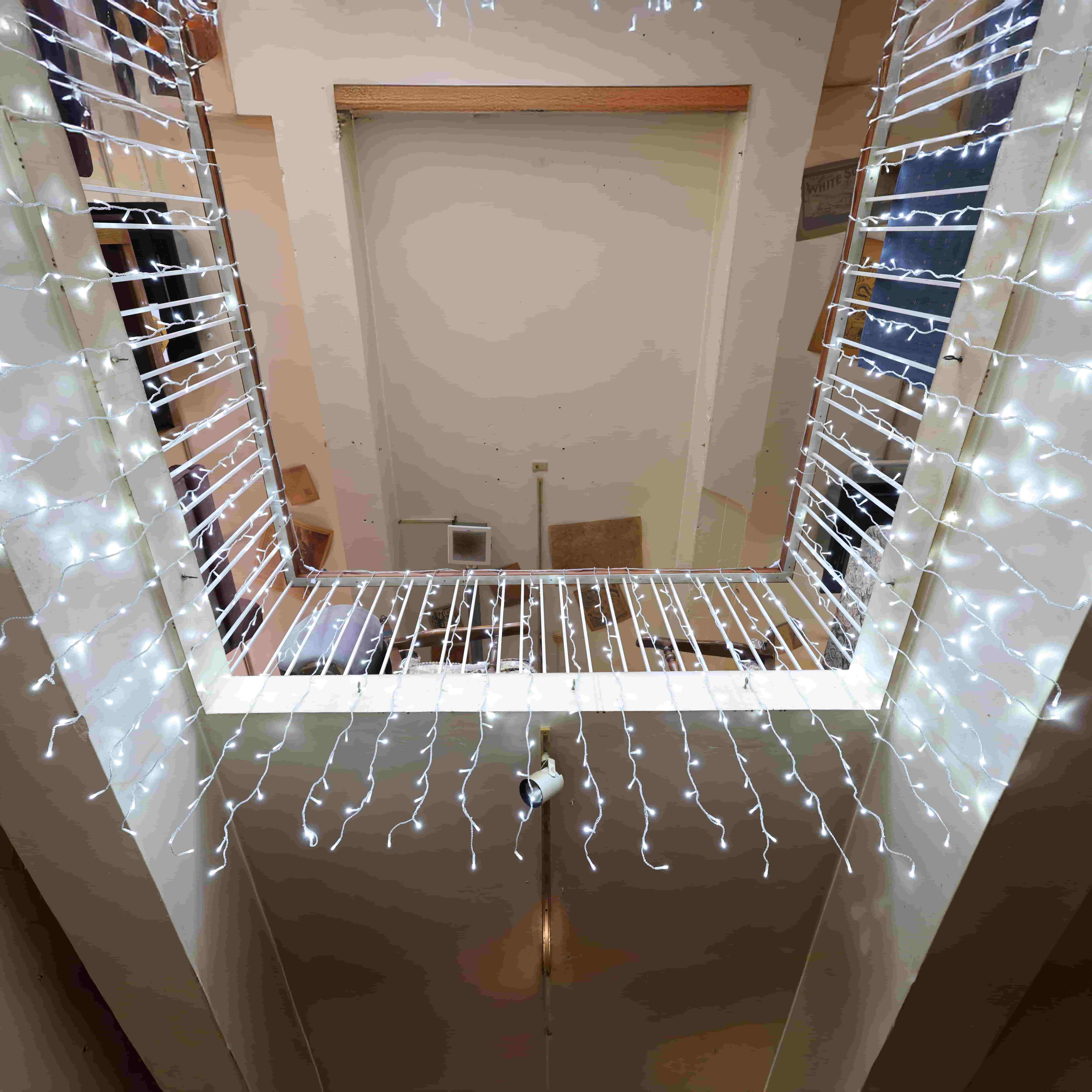 通りからも目を惹く電球色のイルミネーションが、お店の印象をやさしく包みます。設置も簡単で、温もりある光が、お客様を自然と引き寄せます。何度でも使える耐久性の高い仕様です。
